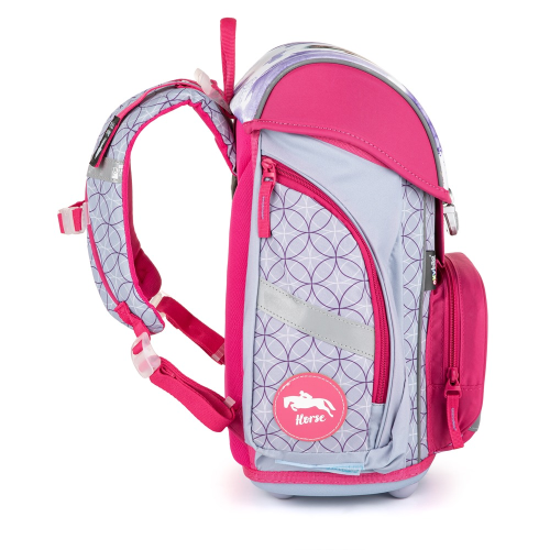 Školská aktovka s motívom koníka nielen pre prváčikov! Výhody aktovky: * pevné dno * anatomicky tvarovaný polstrovaný chrbát * stály tvar batohu vďaka vnútornej výstuhe * reflexné prvky * polstrované nastaviteľné ramenné popruhy * nastaviteľný hrudný popruh * príťažné vrchné popruhy * 1 priestranná komora * 2 bočné vrecká na zips * samostatné TERMO vrecko box * na vnútornej strane klopy je miesto pre rozvrh hodín a štítok s menovkou Váha aktovky: 1100 g Nosnosť aktovky: 8 kg Objem aktovky: 20 l Rozmery aktovky: 35 x 31 x 18 cm