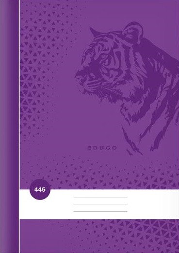 Školský zošit vo formáte A4, štvorčekový, v tmavo fialovej farbe, s motívom tigra, v doskách z kriedového papiera. <br><br> Typ: 445 <br> Formát: A4 <br> Motív: tiger <br> Farba: tmavo fialová <br> Gramáž listov papiera: 60 g <br> Rozmer štvorčeka: 5 x 5 mm <br> Počet listov: 40, štvorčekové <br> Dosky: matný k0