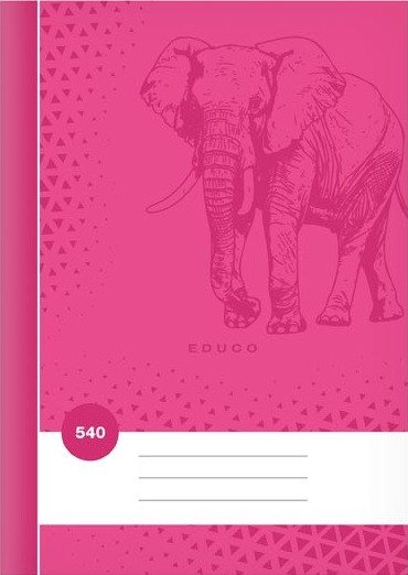 Školský zošit čistý, bez liniek vo formáte A5, v malinovej farbe, s motívom slona, v doskách z kriedového papiera. <br> <br> Typ: 540 <br> Motív: slon <br> Formát: A5 <br> Farba: malinová <br> Počet listov: 40, bez liniek <br> Gramáž listov papiera: 60 g <br> Dosky: matný kriedový papier 200 g