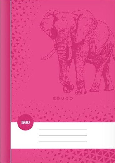 Školský zošit čistý, bez liniek vo formáte A5, v malinovej farbe, s motívom slona, v doskách z kriedového papiera. <br><br> Typ: 560 <br> Motív: slon <br> Formát: A5 <br> Farba: malinová <br> Počet listov: 60, bez liniek <br> Gramáž listov papiera: 60 g <br> Dosky: matný kriedový papier 200 g