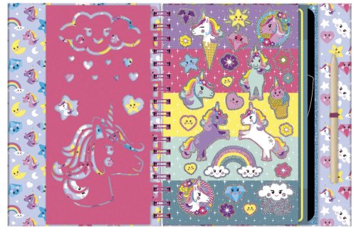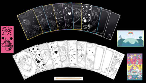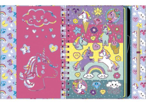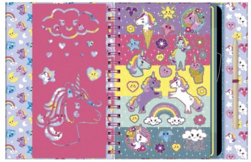 Škrabacie obrázky v tvrdých doskách av špirálovom viazaní na pohodlné otáčanie s motívmi Jednorožca. Skvelé na cestovanie, či už lietadlom, vlakom alebo autom! Stačí zoškrabať a objaví sa farebný obrázok. Obsahuje: 10 škrabacích obrázkov, ceruzku so špičkou na vyškrabávanie, šablóny na obkreslenie a samolepky. Rozmery výrobku 20 x 24 x 1,5 cm. Vhodné pre deti od 3 rokov.