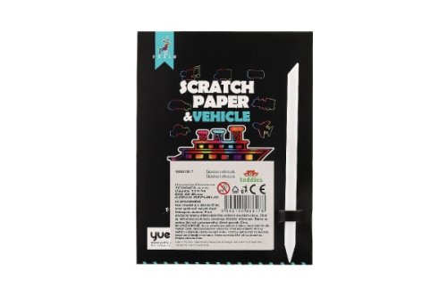 Škrabací obrázok, kde perom zoškriabete podľa vlastnej fantázie dopravné prostriedky. Vyškrabte napr. dvere, okná, atp. 0,5 cm. Vhodné pre deti od 3 rokov.