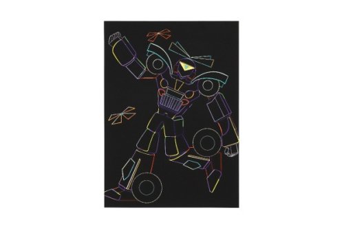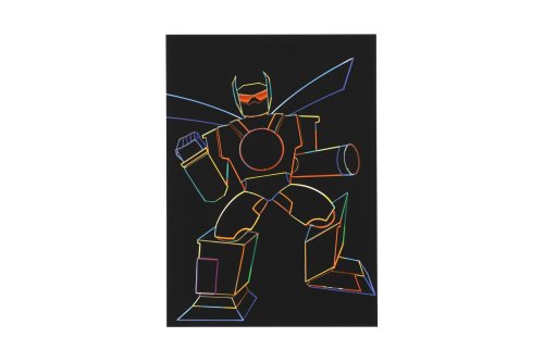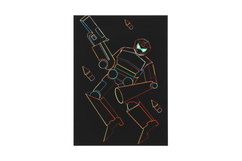 Škrabací obrázok, kde perom šeškriate podľa vlastnej fantázie robota. Doškrabte mu napr. uniformu, atp. Dieťa nakoniec získa obrázok, ktorým si môže vyzdobiť izbičku, pričom samo získa mnoho potrebných zručností, ako je pozornosť, trpezlivosť, opatrnosť a prispeje k rozvoju tvorivého talentu a motoriky. Súprava obsahuje 4 obrázky formátu A4. Rozmery balenia 20 x 27 x 0,5 cm. Vhodné pre deti od 3 rokov.