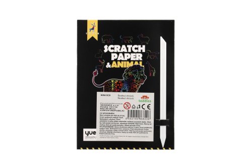 Škrabací obrázok, kde perom šeškriate podľa vlastnej fantázie zviera. Doškrabte mu napr. srsť, tvár atď. Dieťa nakoniec získa obrázok, ktorým si môže vyzdobiť izbičku, pričom samo získa mnoho potrebných zručností, ako je pozornosť, trpezlivosť, opatrnosť a prispeje k rozvoju tvorivého talentu a motoriky. Sada obsahuje 8 obrázkov zvierat. Rozmery balenia 13 x 16 x 0,5 cm. Vhodné pre deti od 3 rokov.