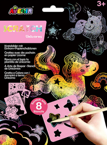 Skvelá remeselná sada pre malé deti. Táto zábavná sada kombinuje kresbu škrabaním a šablóny. Pomocou 8 šablón s mnohými rôznymi obrázkami vytvorte kúzelné obrázky. Vek: 3+