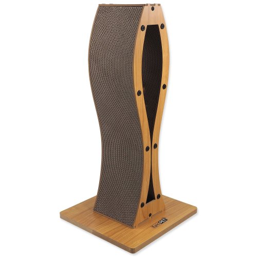 Dizajnové škrabadlo pre mačky s drevenou konštrukciou a možnosťou výmeny kartónových častí. Škrabadlo svojim vzhľadom doplní akýkoľvek moderný štýl domácnosti.