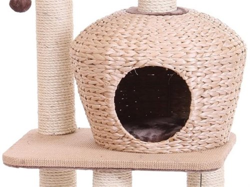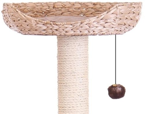 Škrabadlo z vodného hyacintu je svojou elegantnou formou ozdobou každej miestnosti. Veľmi moderné a kvalitné nemecké škrabadlo pre mačku. Pohodlné odpočívadlo na škrabanie s pelechom a polstrovanou vyhliadkou. Mačky musia mať možnosť na brúsenie svojich pazúrikov. Vo voľnej prírode im na to najlepšie slúžia stromy a ich kôra. V byte im potom musíte Vy ponúknuť tú pravú a vhodnú alternatívu. Inak si malý nezbedník nájde náhradu napríklad vo Vašom nábytku, kresle alebo koberci. Rozmery: