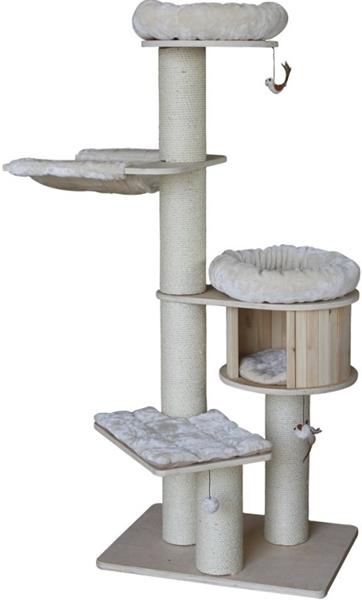 základňa 76 x 56 cm celková výška 176 cm sisalové kmene ø 15 cm domček ø 45 x 28 cm hamak 60 x 55 cm horné odpočívadlo, pelech ø 47 x 11 cm