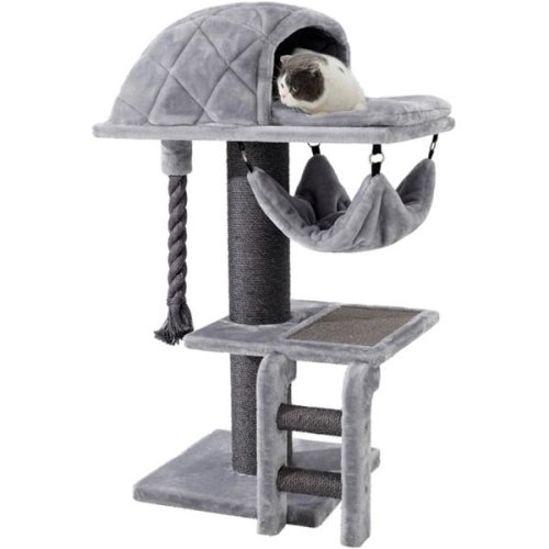 Škrabadlo pre mačky ponúka všestranné využitie. Mačky musia mať možnosť na brúsenie svojich pazúrikov. Vo voľnej prírode im na to najlepšie slúžia stromy a ich kôra. V byte im potom musíte vy ponúknuť tú pravú a vhodnú alternatívu. Inak si malý nezbedník nájde náhradu napríklad vo vašom nábytku, kresle alebo koberci. Škrabadlo je vyvedené v elegantnej šedej farbe, obsahuje sisalový kmeň, horné odpočívadlo s mäkkým vreckom, závesné odpočívadlo, dosku so sisalom, rebrík so sisalom a kvalitný povraz. Parametre: