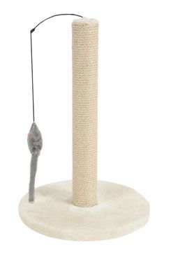 Základnou funkciou škrabadla je uspokojiť prirodzenú potrebu mačiek škrabať a brúsiť si pazúriky. Na tento účel sa skvele hodí škrabadlo v tvare stĺpika a naň pripevnená hračka upúta pozornosť zvieratka a poskytne mu ďalšiu zábavu. Povrch škrabadla je pokrytý drsnými a odolnými konopnými vláknami, ktoré umožnia mačke efektívne brúsiť pazúriky. Set na stabilnom, okrúhlom podstavci čalúnenom mäkkým plyšom, dostupný v dvoch farbách (béžová a šedá) a dvoch veľkostiach, ľahko zapadne do každého interiéru.