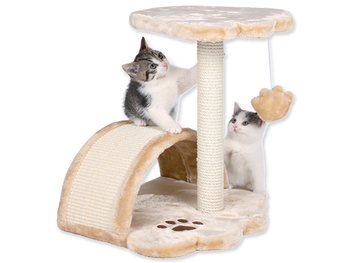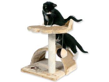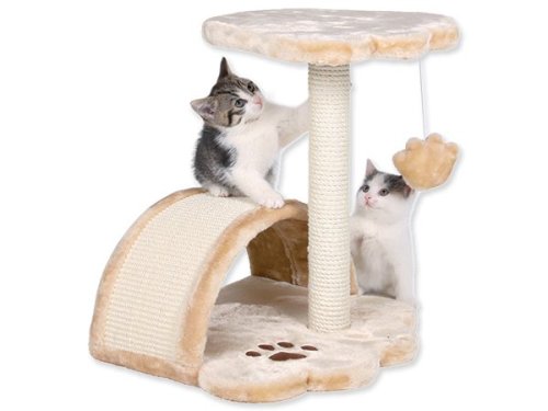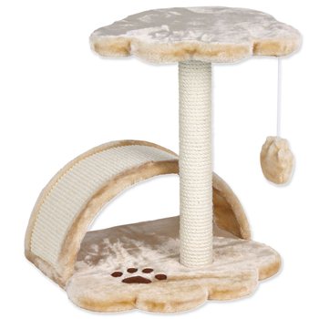 Skvelé odpočívadlo so škrabadlom pre mačky. Odpočívadlo je pokryté mäkkým plyšom. Základná doska v tvare labky. Na nej je preliezací oblúk, ktorý je pokrytý sisalom a slúži na obrusovanie pazúrikov. Na stĺpiku je polstrované ležanie pre mačku, ktoré slúži na odpočinok. Stĺpik má priemer 6 cm a slúži ako škrabadlo. Je pokrytý sisalom. Súčasťou je loptička na povrázku, ktorá bude neustále mačku lákať k hre.