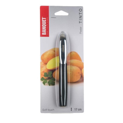 Univerzálna škrabka TINTO je skvelá na lúpanie rôznych druhov ovocia a zeleniny. Škrabka je vyrobená z odolnej zliatiny zinku s pochrómovaným povrchom. Rukoväť je zo špeciálneho plastu, ktorý má protišmykovú úpravu. Výrobok nie je vhodný do umývačky riadu.