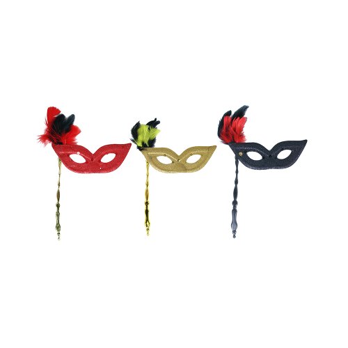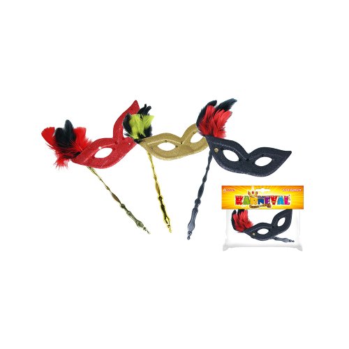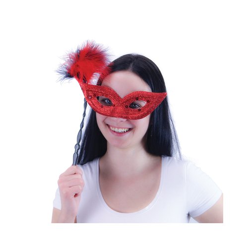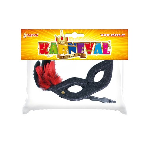 Elegantná škraboška so zlatým držadlom je zdobená hebkým perím, oslnivými trblietkami a flitrami. Staň sa tajuplnou hviezdou karnevalového večierka vďaka tejto úchvatnej škraboške a ohrom tak všetkých svojich priateľov!