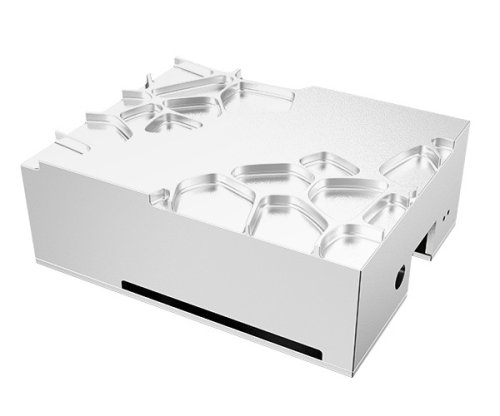 Strieborné puzdro s výrazným drahokamovým designom hore. Zahrnutá tepelná súprava ochladzuje Raspberry Pi 4. Plná podpora otvorenia I/O.