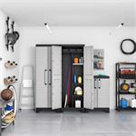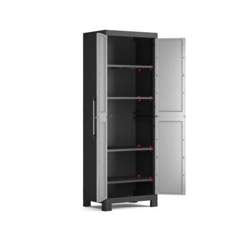 Skriňa Keter Detroit High obsahuje celkom 4 prídavné police , ktoré maximálne sprehľadnia organizáciu vnútorného priestoru. Každá z nich využíva bezpečnostnú poistku SLO pre ľahké výškové prispôsobenie a taktiež ponúka maximálnu nosnosť až 15 kg , čo príde vhod pre výrazne ťažšie predmety všetkého druhu. V útrobách skrine tak pohodlne uchováte aj rozličné dielenské a záhradné náradie , ktoré by sa inam nezmestilo. Veľkou výhodou produktového radu Keter Detroit je tiež jednotný spojovací systém , vďaka ktorému vytvoríte kompletnú skriňovú stenu pre všestranné využitie podľa vašich potrieb a preferencií.