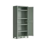 Skriňa obsahuje celkom 4 police s nastaviteľnou výškou - každá s výraznou nosnosťou až 30 kg . Využijete ju teda na skladovanie dielenského náradia či záhradníckych potrieb . Pokiaľ vyberiete police, uložíte do skrine aj náčinie s dlhou násadou, ktoré by sa inam nezmestilo.