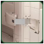 V prípade potreby skriňu uzamknete pomocou visiaceho zámku (nie je súčasťou balenia). Táto skriňa navyše odolá vode a vďaka spevnenému dnu a tyčke, ktorá vystužuje každú policu , je konštrukcia stabilná a bezpečná aj pri väčšom zaťažení.