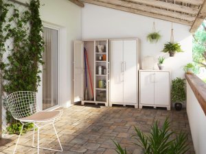 Konštrukcia skrine je ideálna pre vnútorné aj vonkajšie zastrešené priestory. Vďaka kompaktným rozmerom ju ľahko umiestnite pod stôl, do rohu alebo do výklenku. Rýchla montáž bez nutnosti špeciálneho náradia uľahčí inštaláciu v akomkoľvek prostredí.