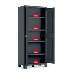 Konštrukcia z kvalitného plastu vyčnieva svojim moderným vzhľadom a poskytuje skrini zvýšenú odolnosť voči prachu, vlhkosti, vode, hrdzi, hnilobe, UV žiareniu či hrubému zaobchádzaniu. Zabudovaný podlahový panel chráni obsah skrine proti vode, bahnu, prachu a ďalším nečistotám . Vďaka možnosti uzamknutia ochránite všetky uschované cennosti pred odcudzením, teda bude vnútorný obsah v úplnom bezpečí za každej situácie. Skriňa sa vďaka svojej vodeodolnosti hodí aj do vonkajšieho prostredia.