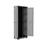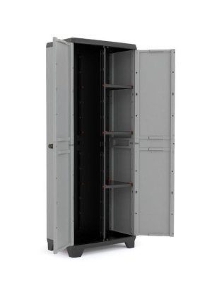 Keter Stilo Utility sa skvele hodí do každého priestoru, kde je potrebné kombinovať klasické policové usporiadanie s otvoreným priestorom na dlhšie náčinie. Pravá časť skrine obsahuje tri nastaviteľné police s nosnosťou 10 kg, zatiaľ čo ľavá časť poskytuje dostatok miesta napríklad na metly, vedierka alebo hadice.