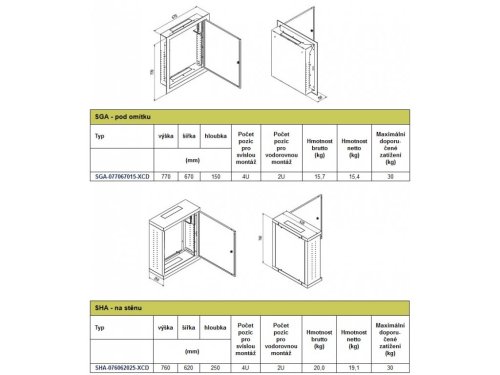 Rekonštruujete dom a zháňate vhodnú rozvádzačovú skriňu? Zaobstarajte si hybridný rozvádzač Triton 4U/2U s roztečou 19” a rozmermi 770 x 670 x 150 mm . Plechové dvere s hrúbkou 1 mm môžete bezpečne zamknúť. Vďaka perforáciám v nich je vnútorný priestor skrine dobre vetraný. Rozvádzač má krytie IP20/IK07 . Namontujete ho priamo na stenu, prípadne do pripraveného otvoru v stene. Hmoždinky, skrutky a podložky sú súčasťou balenia. Maximálne zaťaženie rozvádzača je 30 kg , pri dverách 4 kg.