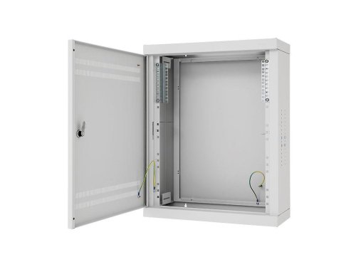 V hornej polovici skrine nájdete posuvné držiaky , ktoré osadíte 19” patch panelmi alebo ističovou vaňou (zvislá montáž). Na bokoch v dolnej polovici sú držiaky pre 19” zariadenie, tie využijete pri vodorovnej montáži. Káblové vstupy s vylamovacími záslepkami sú umiestnené na strope a dne skrine. Na spodnej časti sa nachádza skrutka M8 na pripojenie pospojenia.