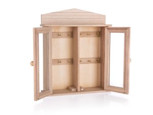 Drevená schránka na kľúče so sklenenými dvierkami je vhodná na zavesenie kľúčov,