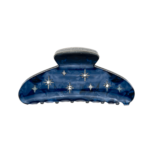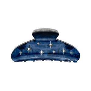Objavte kúzlo nočnej oblohy s Eclipse Nightfall z kolekcie Eclipse. Tento nádherný klip je zdobený trblietavými kamienkami pripomínajúcimi jasné hviezdy, zatiaľ čo vnútorná strana je decentne pokrytá striebornými trblietkami – vytvára tak krásny kontrast medzi svetlom a tmou. Perfektný na dodanie nebeského lesku vášmu účesu – klip Nightfall premení každý look na elegantnú poctu tajomstvom noci.