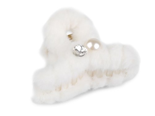 Škripec do vlasov kožušinový s perlou a brúseným kameňom - krémová najsvet.