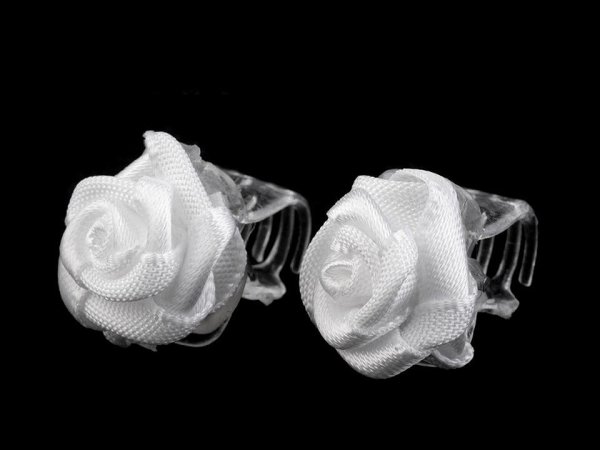 Jemné textilné ružičky vám elegantne ozdobia účes. Sú uchytené na transparentné mini sponce (škripci). Sú vhodné pre všetky slávnostné udalosti, predovšetkým sa hodia na ozdobenie svadobného účesu a pre družičky. Škripec je vyrobený z pružného materiálu, nie je náchylný na prasknutie. [Kvalita ružičky je výborná, kvalita štipcov je priemerná. ]V balení sa občas môžu vyskytnúť chybné kusy.
