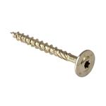 Konštrukčná skrutka s tanierovou hlavou a drážkou Torx sa značí vysokou pevnosťou vďaka použitému materiálu s vyšším obsahom uhlíka a následnému tepelnému zušľachteniu. Klzný lak na povrchu skrutky znižuje trenie pri zavrtávaní do dreva.