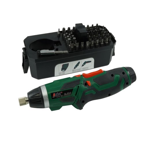 Aku skrutkovač ASIST 3,6 V, 1300 mAh, batéria Li-on. Slúži na utiahnutie a povolenie skrutiek a skrutiek. Tiež možné vyvŕtanie potrebných malých otvorov do mäkkých materiálov. Jednoduchá obsluha, rýchle nabíjanie a dostatočná kapacita batérie. Ďalšími výbornými doplnkami sú ľad kontrolka nabíjania, LED svetlo a rukoväť soft grip. Možno tiež použiť ako baterku.