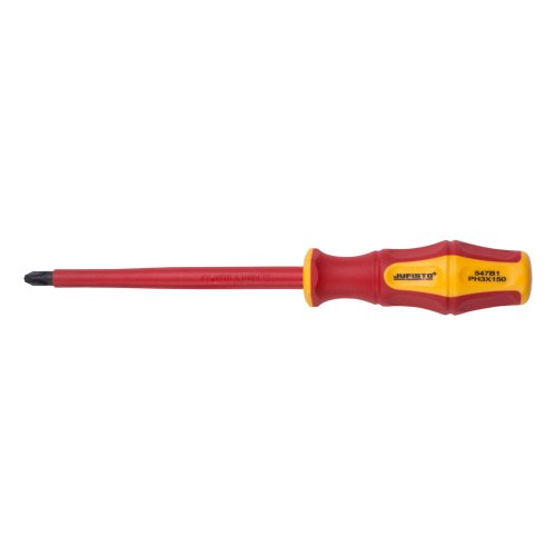 Skrutkovač je vyrobený z kvalitnej CrV ocele, ktorá zaisťuje jeho pevnosť a odolnosť. Materiál rukoväte zaisťuje bezpečné uchopenie a elektrickú izoláciu. Vďaka VDE certifikácii je zaručené bezpečné použitie pri práci na elektrických inštaláciách do 1000 V (1 kV). Krížový skrutkovač s izolovanou stopkou. Tento elektrotechnický skrutkovač na krížové skrutky je určený na prácu s elektrickými súčiastkami. Jeho krížová čepeľ slúži na manipuláciu a uťahovanie skrutiek s krížovými otvormi, ako sú typy PZ a PH. Rukoväť je izolovaná, čo chráni používateľa pred úrazom elektrickým prúdom a umožňuje bezpečné uchopenie. Elektrické skrutkovače sa široko používajú pri práci s rôznymi elektrickými komponentmi, vrátane zásuviek, vypínačov, dosiek plošných spojov, káblov a ďalších podobných súčastí.