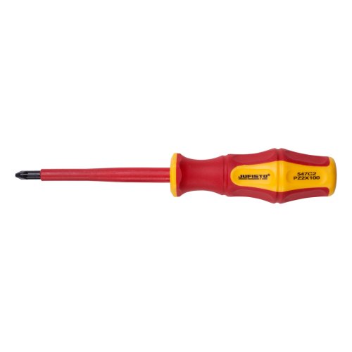 Skrutkovač je vyrobený z kvalitnej CrV ocele, ktorá zaisťuje jeho pevnosť a odolnosť. Materiál rukoväte zaisťuje bezpečné uchopenie a elektrickú izoláciu. Vďaka VDE certifikácii je zaručené bezpečné použitie pri práci na elektrických inštaláciách do 1000 V (1 kV). Krížový skrutkovač s izolovanou stopkou. Tento elektrotechnický skrutkovač na krížové skrutky je určený na prácu s elektrickými súčiastkami. Jeho krížová čepeľ slúži na manipuláciu a uťahovanie skrutiek s krížovými otvormi, ako sú typy PZ a PH. Rukoväť je izolovaná, čo chráni používateľa pred úrazom elektrickým prúdom a umožňuje bezpečné uchopenie. Elektrické skrutkovače sa široko používajú pri práci s rôznymi elektrickými komponentmi, vrátane zásuviek, vypínačov, dosiek plošných spojov, káblov a ďalších podobných súčastí.