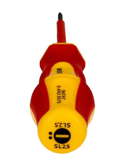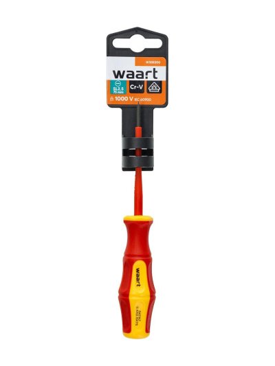 Skrutkovač je vyrobený z kvalitnej CrV ocele, čo zaručuje jeho pevnosť a odolnosť. Vďaka VDE certifikácii je zaistené bezpečné použitie pri práci na elektrických zariadeniach do 1000 V (1 kV). Plochý izolovaný skrutkovač. Tento plochý elektrotechnický skrutkovač je nástroj s plochou čepeľou určený na prácu s elektrickými súčasťami. Plochá čepeľ sa používa na manipuláciu a uťahovanie skrutiek s drážkovými otvormi, teda plochých skrutiek. Skrutkovač je vybavený izolovanou rukoväťou z materiálu, ktorý zaisťuje elektrickú izoláciu a chráni užívateľov pred úrazom elektrickým prúdom, pričom umožňuje bezpečné uchopenie. Elektrické skrutkovače sa široko používajú pri práci s rôznymi elektrickými komponentmi, ako sú elektrické zásuvky, spínače, dosky plošných spojov, káble a ďalšie podobné súčasti.