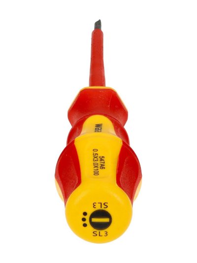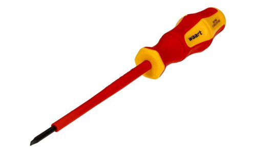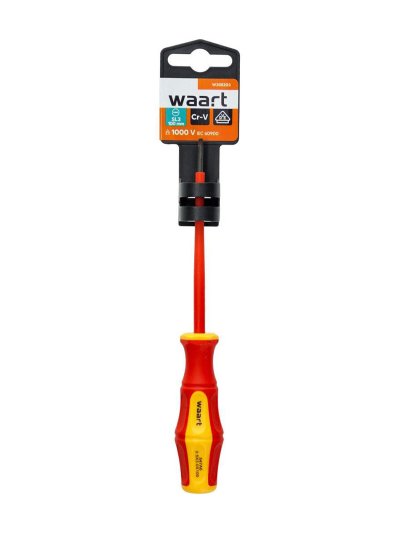 Skrutkovač je vyrobený z kvalitnej CrV ocele, čo zaručuje jeho pevnosť a odolnosť. Vďaka VDE certifikácii je zaistené bezpečné použitie pri práci na elektrických zariadeniach do 1000 V (1 kV). Plochý izolovaný skrutkovač. Tento plochý elektrotechnický skrutkovač je nástroj s plochou čepeľou určený na prácu s elektrickými súčasťami. Plochá čepeľ sa používa na manipuláciu a uťahovanie skrutiek s drážkovými otvormi, teda plochých skrutiek. Skrutkovač je vybavený izolovanou rukoväťou z materiálu, ktorý zaisťuje elektrickú izoláciu a chráni užívateľov pred úrazom elektrickým prúdom, pričom umožňuje bezpečné uchopenie. Elektrické skrutkovače sa široko používajú pri práci s rôznymi elektrickými komponentmi, ako sú elektrické zásuvky, spínače, dosky plošných spojov, káble a ďalšie podobné súčasti.
