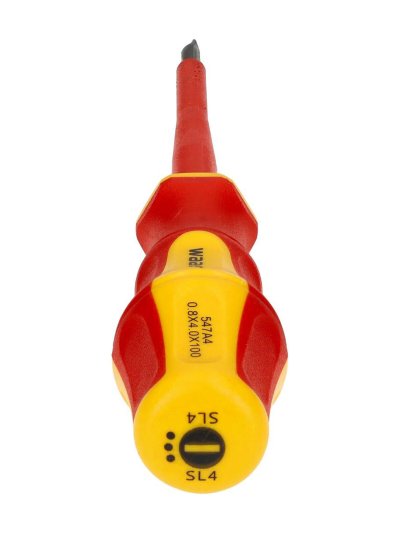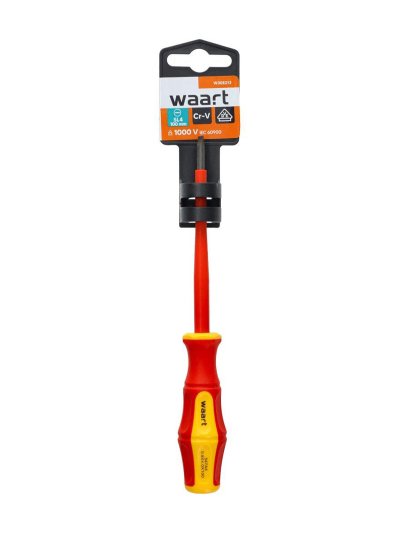 Skrutkovač je vyrobený z kvalitnej CrV ocele, čo zaručuje jeho pevnosť a odolnosť. Vďaka VDE certifikácii je zaistené bezpečné použitie pri práci na elektrických zariadeniach do 1000 V (1 kV). Plochý izolovaný skrutkovač. Tento plochý elektrotechnický skrutkovač je nástroj s plochou čepeľou určený na prácu s elektrickými súčasťami. Plochá čepeľ sa používa na manipuláciu a uťahovanie skrutiek s drážkovými otvormi, teda plochých skrutiek. Skrutkovač je vybavený izolovanou rukoväťou z materiálu, ktorý zaisťuje elektrickú izoláciu a chráni užívateľov pred úrazom elektrickým prúdom, pričom umožňuje bezpečné uchopenie. Elektrické skrutkovače sa široko používajú pri práci s rôznymi elektrickými komponentmi, ako sú elektrické zásuvky, spínače, dosky plošných spojov, káble a ďalšie podobné súčasti.