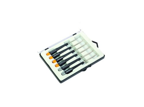 Skrutkovače jemné - (ploché a PH) súprava 6ks v plastovom organizéri. Materiály: CrV, magnetická koncovka Súprava obsahuje: - 1.5 2.0 2.5 x 50 mm, PH 000x50 mm, PH 00x50 mm, PH 0x50 mm