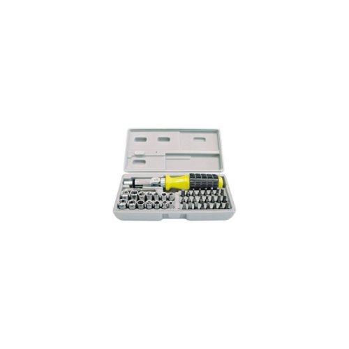sada skrutkovač s bitmi, 40 ks všetky diely vyrobené z chrómvanádiovej ocele Gumová rukoväť s kĺbom a 3-polohovou račňou obsah balenia: 1/4" skrutkovač 1/4" zásúvací konektor 50 mm hlavice 1/4“ 6, 7, 8, …