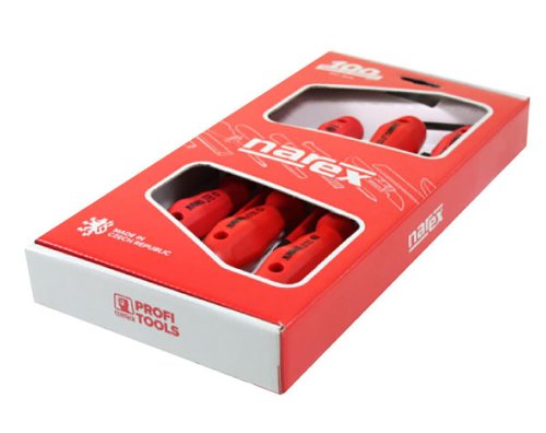 Rad PROFI LINE ELEKTRO SLIM - skrutkovače ploché + Phillips + skúšačka napätia. Určené na prácu pod napätím v elektrotechnických odboroch. Skrutkovače spĺňajú požiadavky EN 60900:2004 (IEC 60900:2004). Každý skrutkovač je skúšaný na prieraz elektrickým prúdom vo vodnom kúpeli pri napätí 10 000 V. Je zaručená bezpečná práca až do napätia 1 000 V.