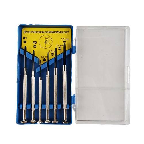 sada najpoužívanejších tvarov hrotov a veľkostí skrutkovačov pre jemnú mechaniku a optiku, ENPRO krížový skrutkovač: PH0, PH1 plochý skrutkovač: 1,4 mm, 2 mm, 2,4 mm, 3 mm materiál: uhlíková oceľ balené …