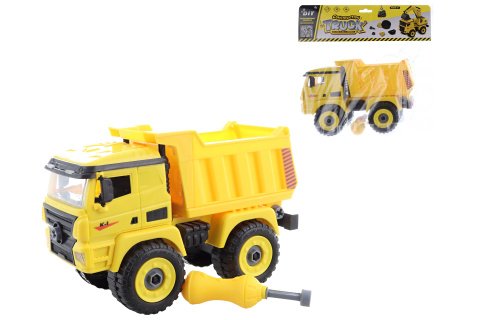 Skrutkovací sklápačka o veľkosti cca 21 x 14 x 10 cm + palstový skrutkovač s dĺžkou cca 10,5 cm. Balené v sáčku. Rozmer balenia cca 26 cm x 25 cm x 10 cm. Vek 3+