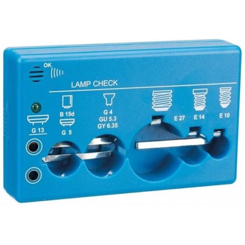 Skúšačka na žiarovky pre rôzne závity: G13, B 15d, G4, G5, GU 5.3, GY 6.35, E 27, E 14, E 10. Napájanie: alkalická batéria 9V - nie je súčasťou balenia. Farba: modrá