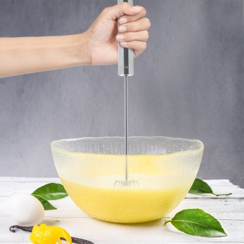 Univerzálna nerezová rotačná metla umožní bez námahy napeniť mlieko, ušľahať šľahačku či bielky, namiešať omeletu.