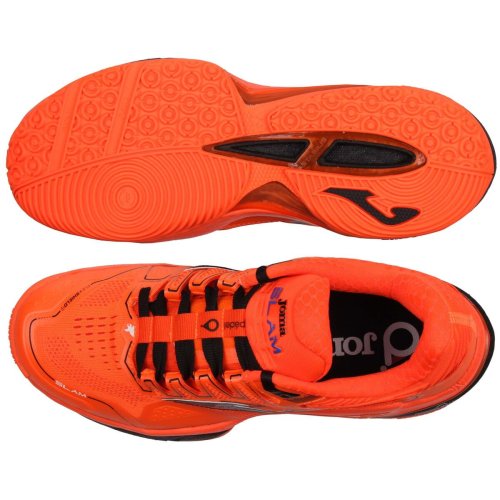 Nový Slam model značky JOMA na padlá a tvrdé povrchy je určený pre pravidelných a náročných hráčov. Aj naďalej si zachováva maximálnu úroveň priľnavosti, ochrany, stability a odpruženia. Zvršok je vyrobený z priedušnej sieťoviny, ktorá má elegantnú žakárovú úpravu s VTS perforáciou. Táto technológia umožňuje cirkuláciu vzduchu a zaisťuje tak správnu ventiláciu. Vďaka použitým technológiám SPORTECH a PROTECTION je topánka ľahká, flexibilná a odolná. Medzipodrážka má nový tvar, aj keď stále obsahuje technológiu DUAL REACTIVE, zloženú z horného phylonu a spodného REACTIVE BALL. Dosahuje dokonalú rovnováhu medzi odpružením, reaktivitou a stabilitou, ktorú posilňuje diel STABILIS. Všestranná podošva z gumy DURABILITY, tvorená malými kruhovými výstupkami na zlepšenie odolnosti na tvrdom povrchu. Uľahčuje sklzy počas rýchlej hry. Zahŕňa geometrickú štruktúru ROTATION pre uľahčenie otáčania.