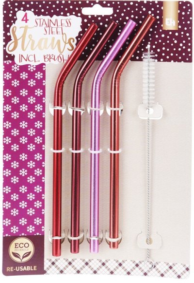 • slamky do miešaných drinkov alebo limonád vyrobená z nerezovej ocele - z nerezových slamiek sa neuvoľňujú žiadne škodlivé látky - ľahko umývateľná, môžu aj do umývačky riadu - balenie obsahuje 5 ks: - 4 x slamka 21,5 cm - 1 x čistiaca kefka - farba: odtiene fialovej