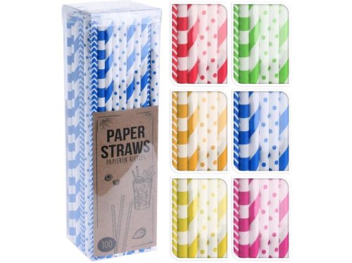 Slamky 6 x 195 mm, papierová, mix farieb a dekorov (100 ks).