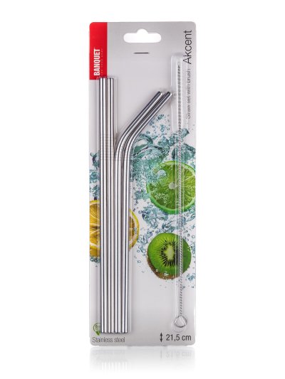 Slamky nerez 21,5 cm (4 ks) + kefka na čistenie.