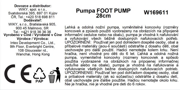 Nožná pumpa nafukovacia je klasická pumpička, ktorá má objem vzduchu 4 la je teda vhodná na nafukovanie stredne veľkých letných nafukovacích vecí, či už sa jedná o lehátka alebo nafukovacie bazény. Rozmer 19x28 cm.