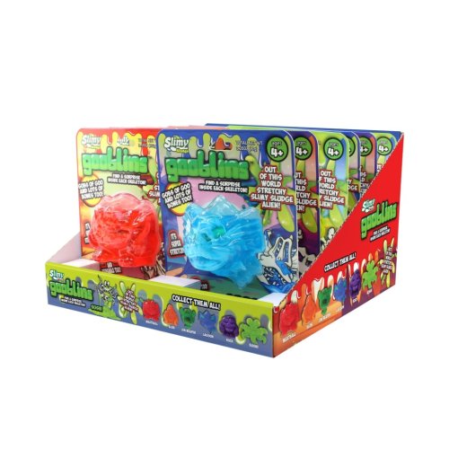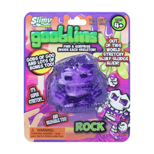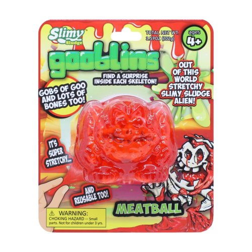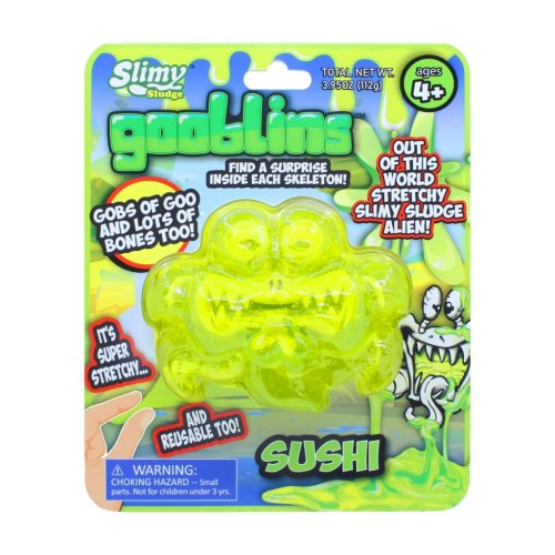 Slimy Gooblins! sú zábavné a originálne hračky určené pre deti od 4 rokov, ktoré kombinujú prvky slizu a prekvapenia. Každý Gooblin je vyrobený z pružného, tiahleho slizu, ktorý je výrazne priehľadný a farebný, čo zaručuje vizuálnu atraktivitu a príjemný hmatový zážitok. Sliz má tvar rôznych strašidelných alebo komických postavičiek, ako sú napríklad Sushi, Rock, Meatball, Jim Reaper alebo Blob, pričom každá figúrka má vo vnútri ukrytý malý kostlivý prekvapivý prvok, ktorý deti môžu objavovať a zbierať. Tento prvok pridáva hre ďalší rozmer a podporuje detskú zvedavosť.